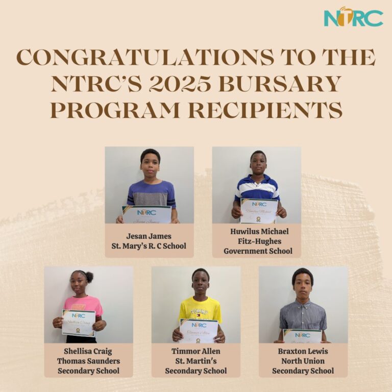KINGSTOWN, ST. VINCENT AND THE GRENADINES – The NTRC launched its annual bursary program in 2017 and has continued to provide support to primary and secondary school students across St. Vincent and the Grenadines. In 2025, six students, three from primary schools and three from secondary schools, were awarded bursaries to assist with school related expenses for the 2025-2026 school year.